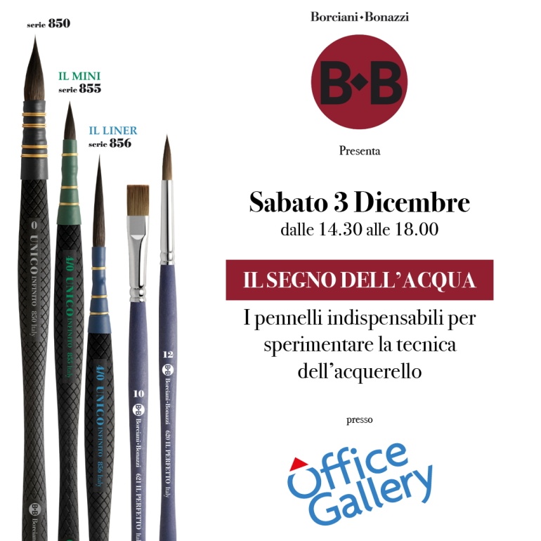 "Il Segno dell'Acqua - i pennelli indispensabili per sperimentare la tecnica dell'acquerello" a cura di Borciani e Bonazzi, presso Office Gallery al 1° piano di Città Fiera.